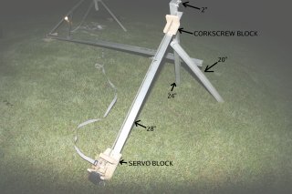 Right ascention arm: 62" Diagonal support: 25" Declination triangle: 22.5" * 2 , 2" * 2 Declination adjustment: 9" , 6" Right ascention triangle: 20" , 24" , 2.5" Servo drive: 28"Only one length of 1/8" angle aluminum is used: