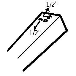 Measurements of holes in the declination adjustment aluminum. Only the necessary holes are measured. The other holes were experimental. Unless otherwise noted, holes are roughly equidistant from both sides of the rod. End holes are 1/2" from the end.