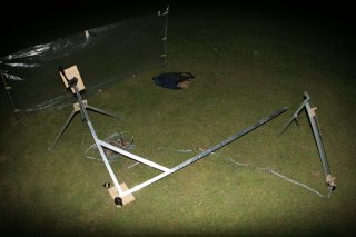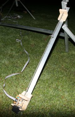 Additional members support the camera platform. The right ascention arm is held up by 5lb fishing line and hangs in mid air.