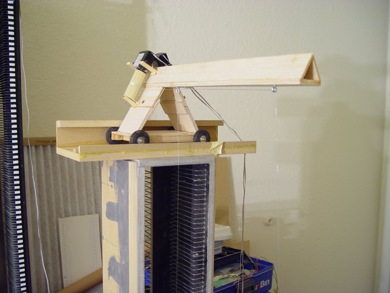 The crane is locked into a J shaped track. This is the most stable method and keeps it from needing a counterweight.