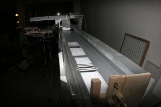 Many early barcode attempts. The crane uses barcodes to know where it is and align exactly with each tower. 4 bars encode the tower number. 1 bar aligns the crane with the tower. A fat bar is a 1 and a thin bar is a 0.