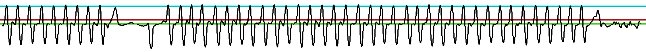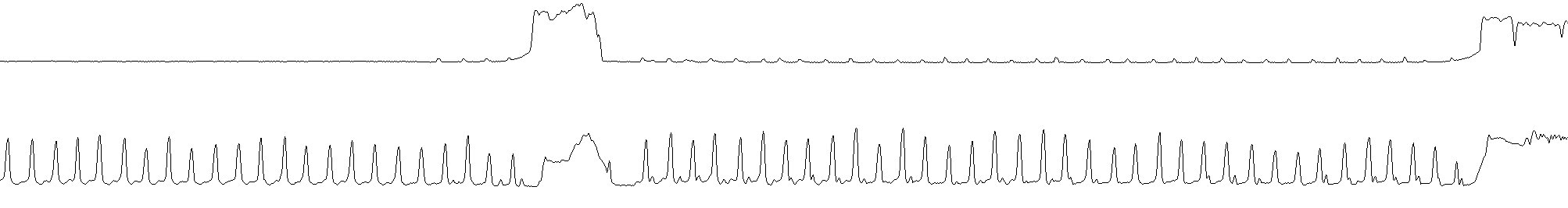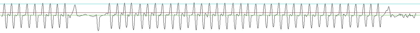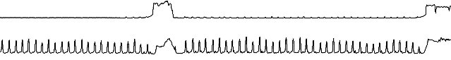 This is the analog data from the vertical sensors during a sled movement. The middle sensor is on top and the side sensor is on the bottom. You can clearly see where the black sleaves and express boundaries appear in the middle sensor. The rows clearly show up in the side sensor. Unfortunately, this isn't enough for a computer.