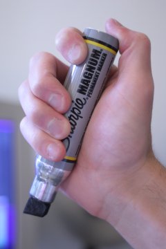 To cut costs, it helps to know someone with a laser printer to print the sleave patterns. Since toner cracks when it is folded, the Sharpie MAGNUM fills in the leading edge after folding. To cut down on insanity, they're only made 5 at a time as needed.