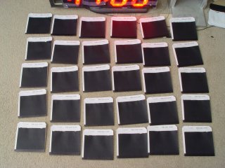The sleaves store 2 disks in a pancake. 110 are required for the Heroine 220 tower. The most economical way to make sleaves was to make them out of a single piece of black paper.
