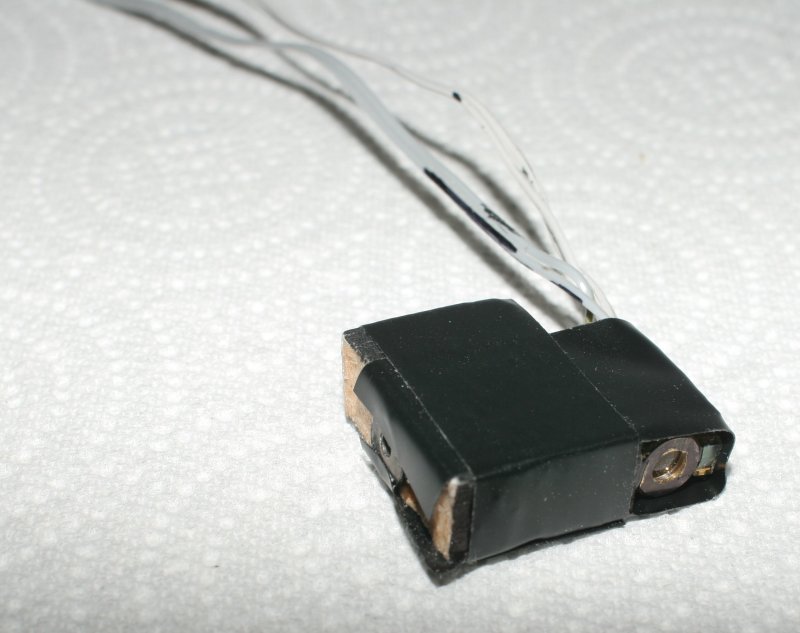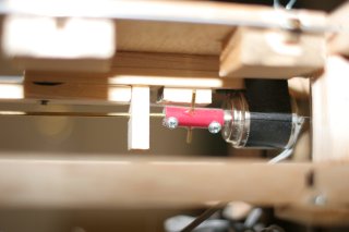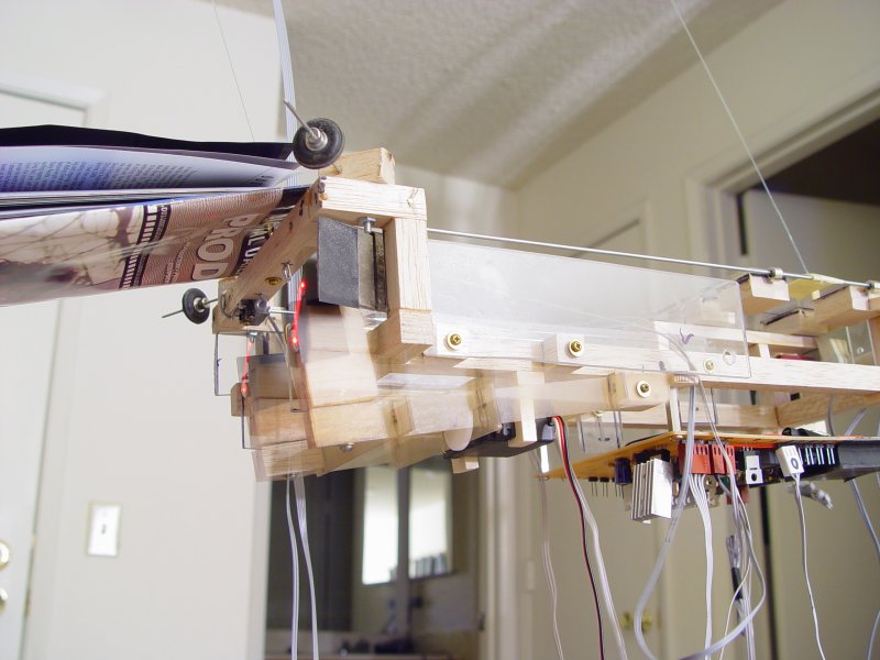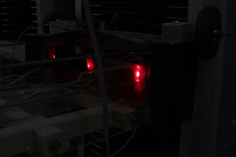 The sled is bristling with sensors. This cutoff sensor detects when a disk is blocking the path of vertical motion.