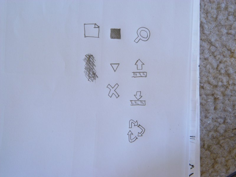 Icons for the software were drawn on paper and scanned.