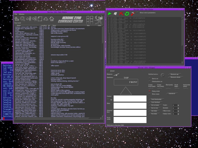 The software provides a directory view of the DVD library, a list of robot jobs, and a manual control for the robot. The manual control was written before anything else and is still used in the rare case of a glitch.