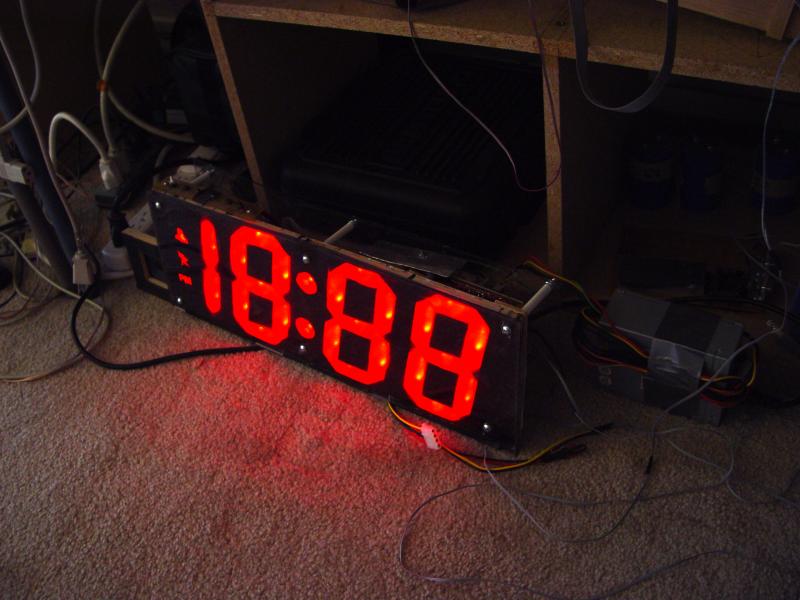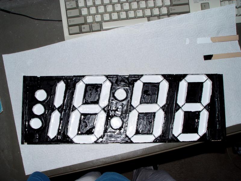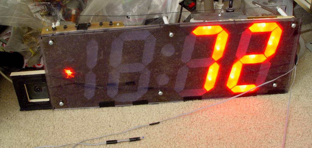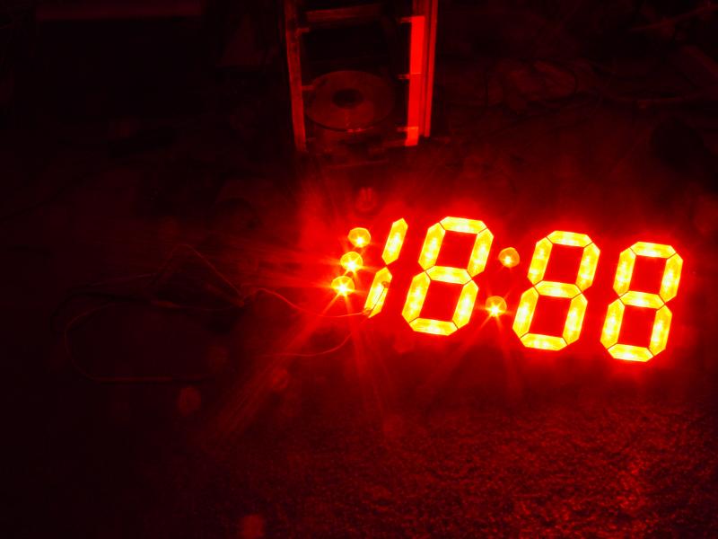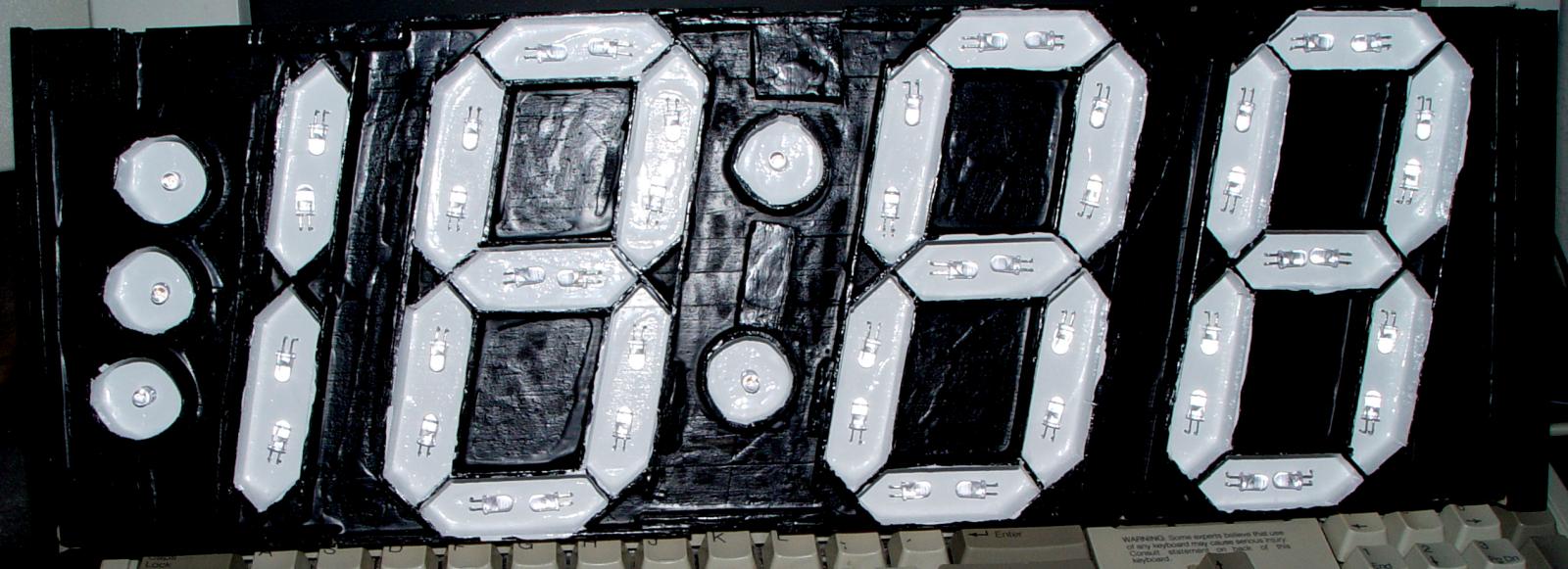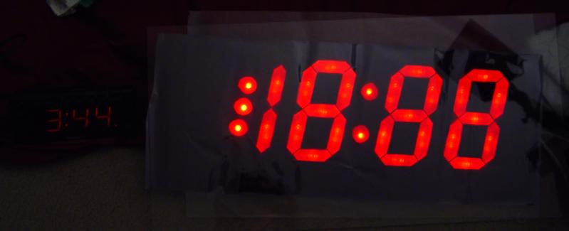That's right. This 6" x 18" clock needs 52 light sources. It may one day allow humans to know the time without glasses. For 25 years we searched for clocks big enough to be see without glasses. No large clock existed commercially so our only resort was to have clocks everywhere in the dumpy apartment.