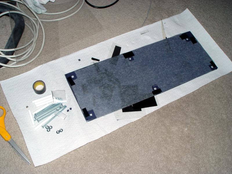 The fully assembled faceplate is ready. It consists of a sheet of acryllic plastic to give a nice smooth surface, a sheet of windowshade foil to darken the inside, and a sheet of wax paper to diffuse the LED lights. This combination proved most effective and affordable in previous tests.