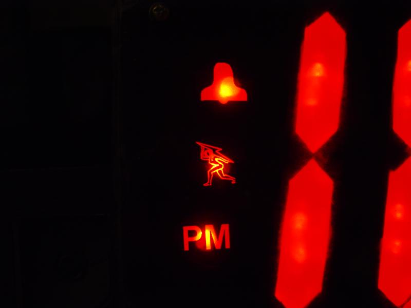 The backlit icons are lot more visible in real life than they are on camera. The alarm and pm icons go off but the heroine icon stays on at all times. The icons are laser printed on transparencies, two layers deep.