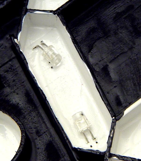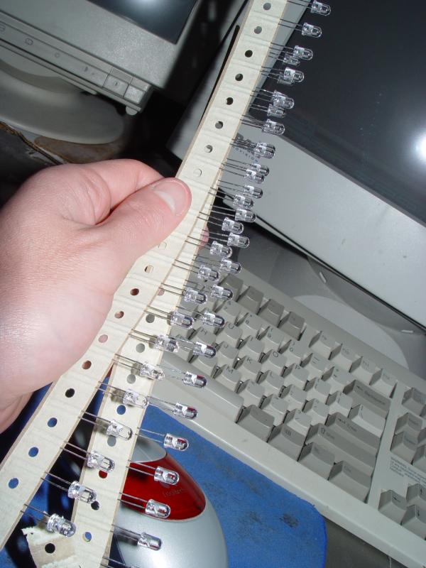 The key was figuring out how to permanently mount LEDs in that position. Discovered fiberglass is resistant enough to heat to be used as a soldering surface.