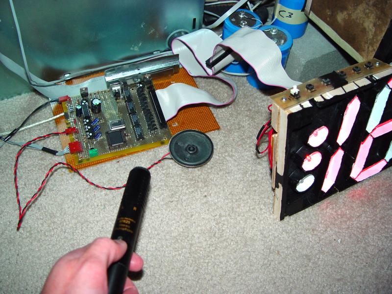 Finally got the music synthesizer working for HeroineClock's alarm. The music synthesizer has a 5 octave range with rests and complete timing control. The 16F87 has enough horsepower to run the clock, thermometer, and oscillate the speaker 2000 times a second.