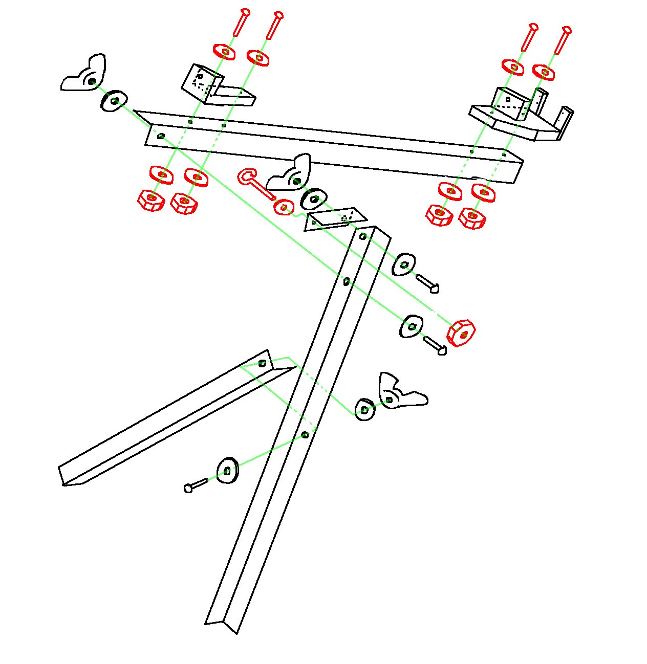 The diagonal support should have square ends, not bevelled ends as in some pictures. That was a failed experiment. The square ends should extend beyond the arms.